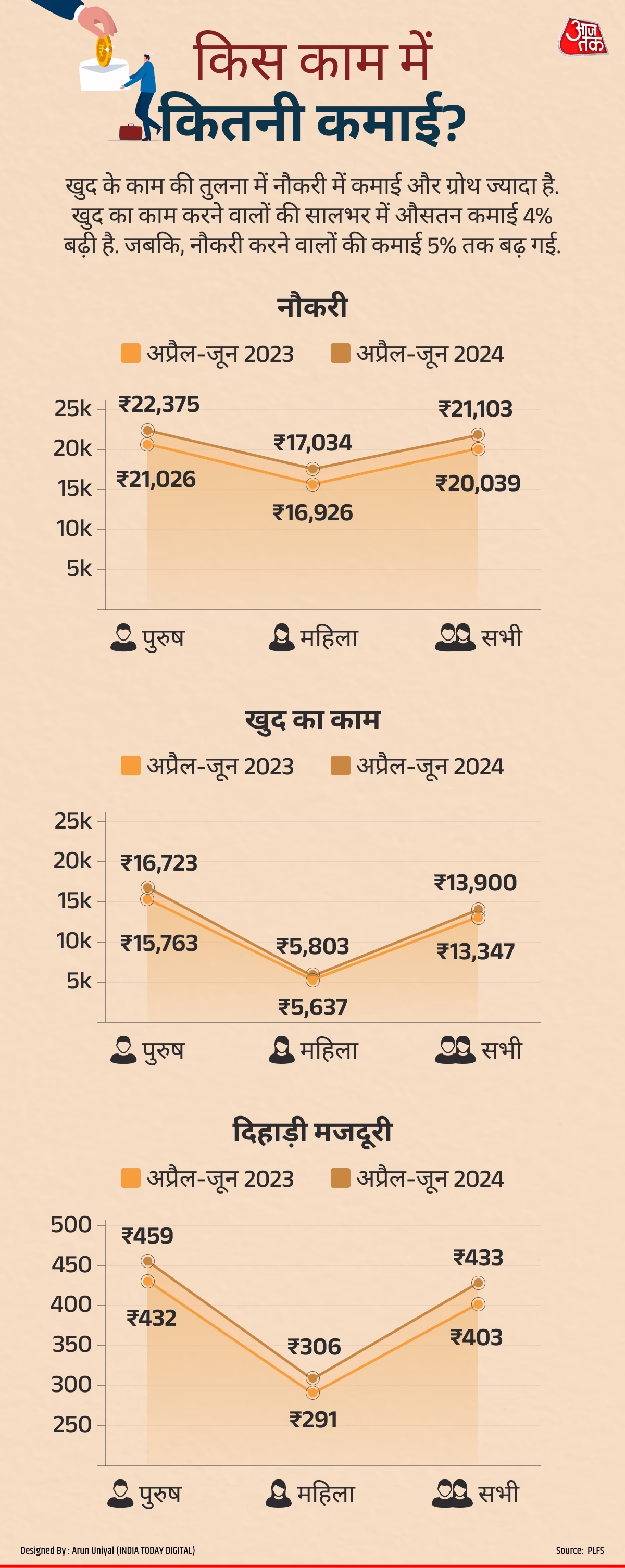 The PLFS report shows that holding a job yields an average monthly income of over ₹21,000. In contrast, self-employed individuals earn less than ₹14,000 per month.