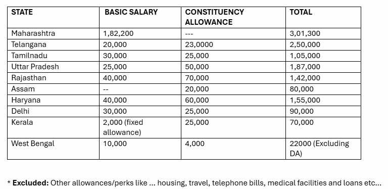 Minister salaries have increased from ₹60,000 to ₹125,000, and the Chief Minister's from ₹75,000 to ₹150,000. Notably, these figures reflect base salaries, with additional allowances considered.
