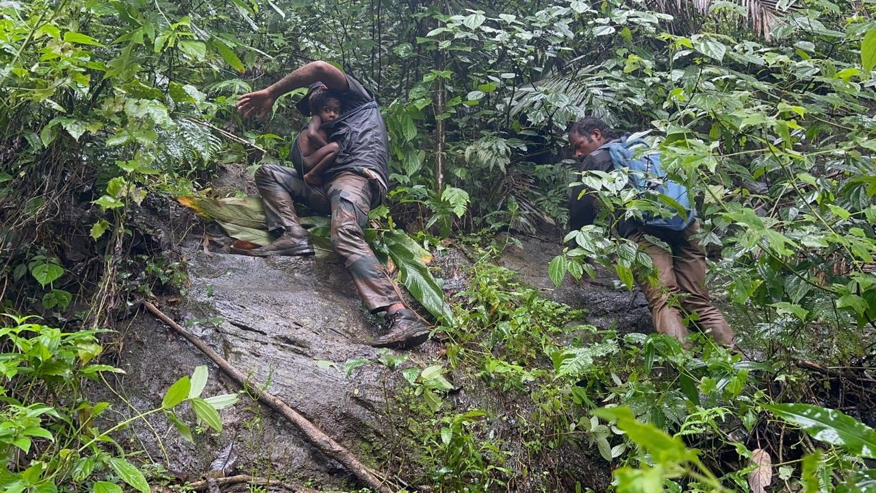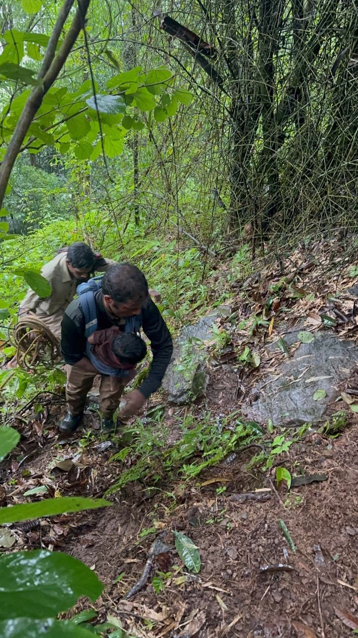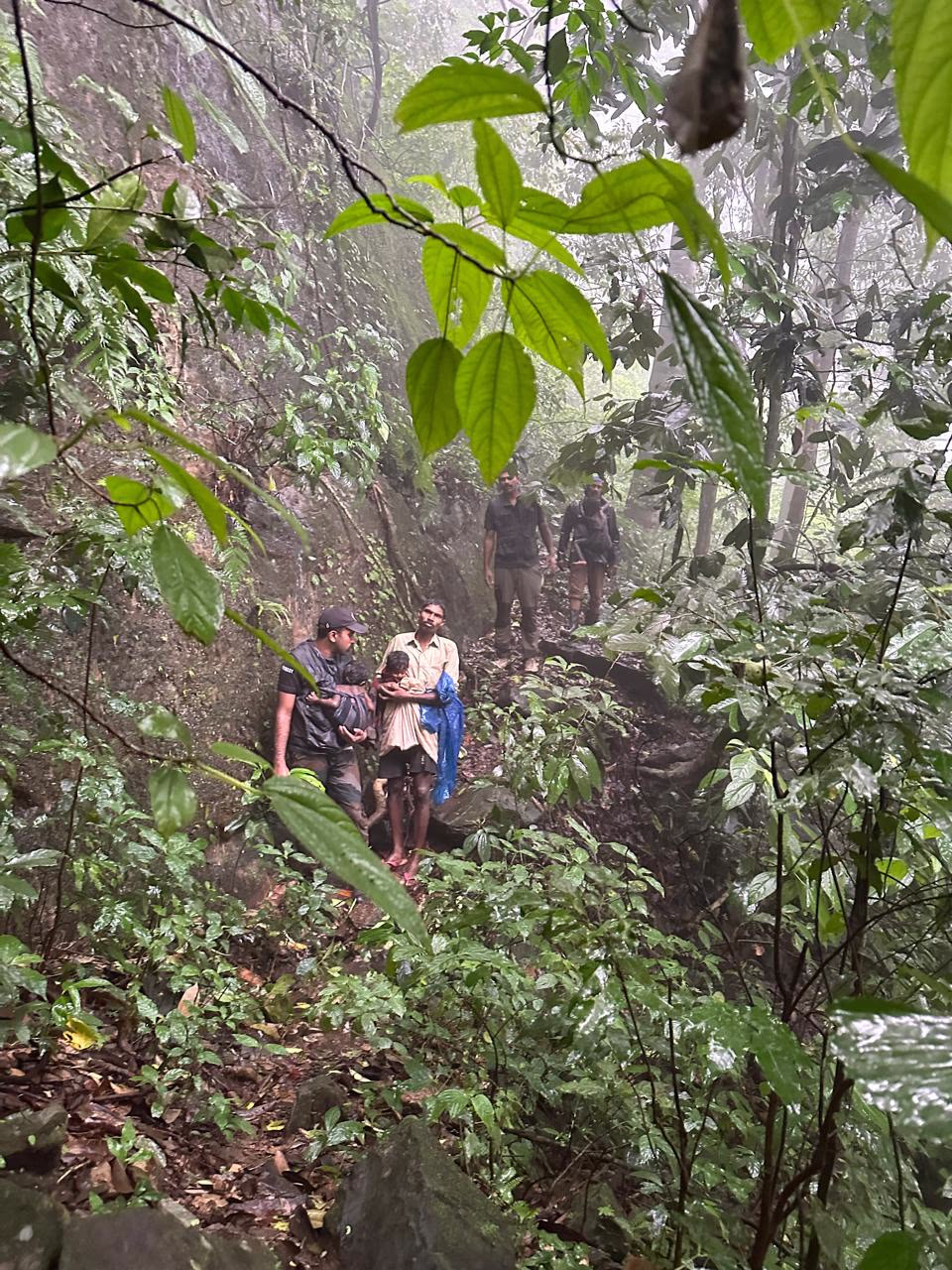 The Forest Range Officer described the perilous trip, which involved maneuvering through slippery, steep rocks amidst heavy rain. Hashis said, "The children were exhausted, and we fed them whatever food we had carried. Eventually, after much persuasion, their father agreed to come with us. We tied the children to our bodies and began the journey back." The team had to use ropes tied to trees and rocks to climb the slippery boulders.