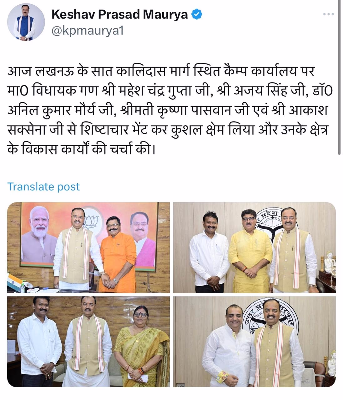 From July 14 to July 24, here are the names of the dignitaries who visited Keshav Prasad Maurya’s camp office and had their photos clicked with the Deputy Chief Minister, shared on social media: