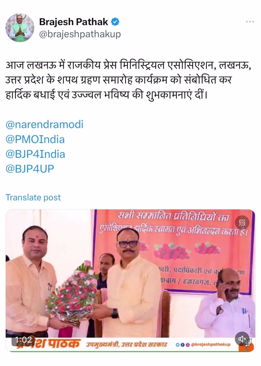Brajesh Pathak, the second Deputy CM, follows Maurya's approach. He too, despite sharing tweets related to Uttar Pradesh, does not tag Chief Minister Yogi Adityanath. This clearly indicates that the relationship between CM Yogi Adityanath and the two Deputy CMs is not cordial.