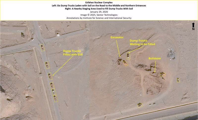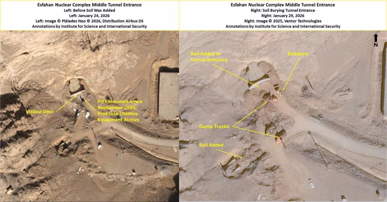 The Institute for Science and International Security reports that Iran has once again filled the central entry gate of its underground complex with soil. Fresh layers of soil are also being laid at the southern entry gate of the complex.