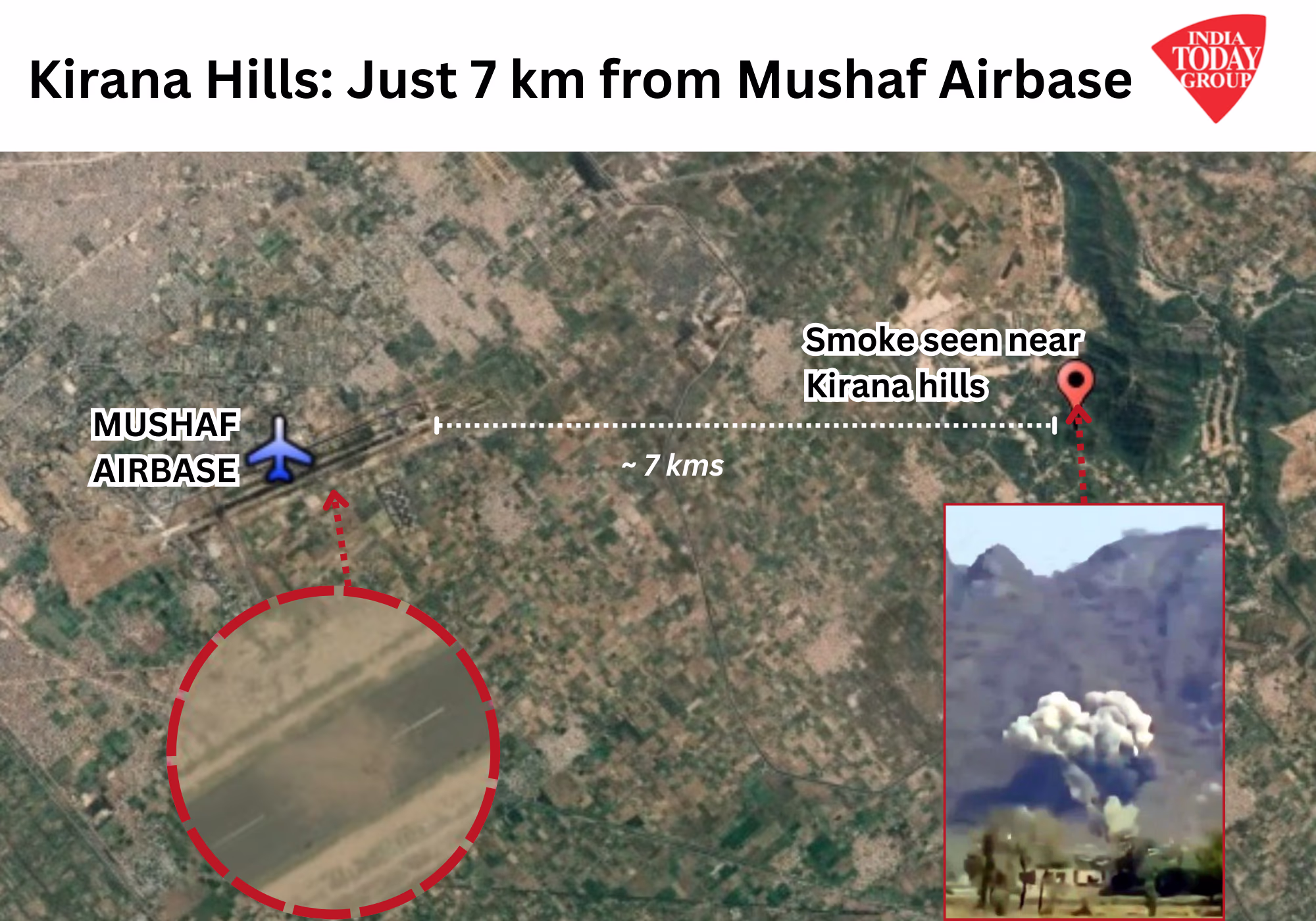 Social media footage posted on the day of the alleged attack shows smoke rising from nearby peaks. Based on geolocation by India Today's open-source intelligence (OSINT) team, the smoke source may be near these peaks. Intriguingly, Air Marshal Bharti also denied the existence of nuclear properties in Kirana Hills.