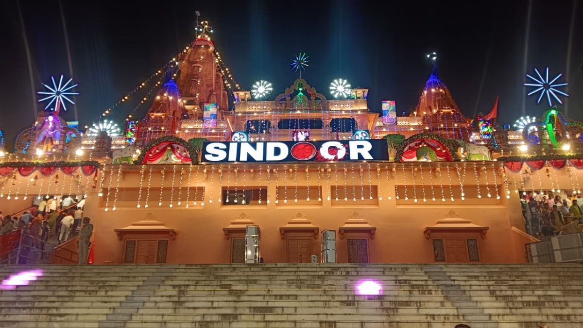 Photos from the birthplace of Lord Krishna in Mathura show a huge gathering of devotees outside the temple. The temple has been beautifully decorated with the theme of 'Operation Sindoor' for this Janmashtami.
