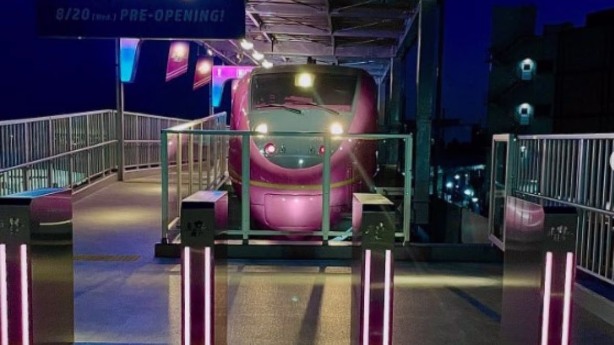 Before entering, guests pass through a ticket gate and are then taken to a mysterious platform where their futuristic journey begins.
