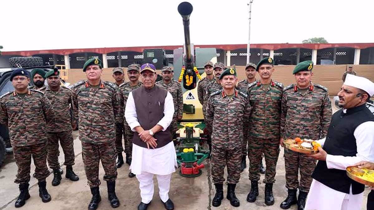 During the auspicious festival of Vijayadashami, Defense Minister Rajnath Singh conducted a sacred weapon worship at the Bhuj military station in Gujarat. He specially performed rituals on the L-70 air defense gun, which recently played a pivotal role in thwarting Pakistani intrusions during Operation Sindoor. Despite its vintage status, the upgraded gun amazed everyone by bringing down enemy drones from the sky.
