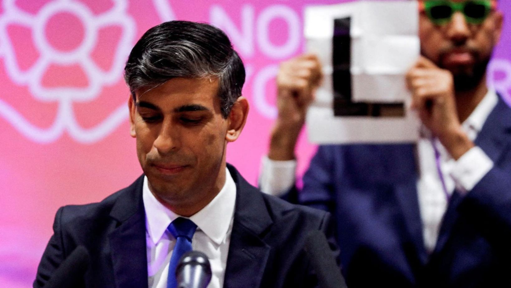 While Keir Starmer is celebrated for his victory, caricatures mocking Rishi Sunak's defeat are surfacing. Sunak, the former Prime Minister, now faces criticism post-election. During his concession speech, someone holding up an 'L' for loser sign appeared behind him – the person was Nico Omilana, a rival candidate who also lost the elections.