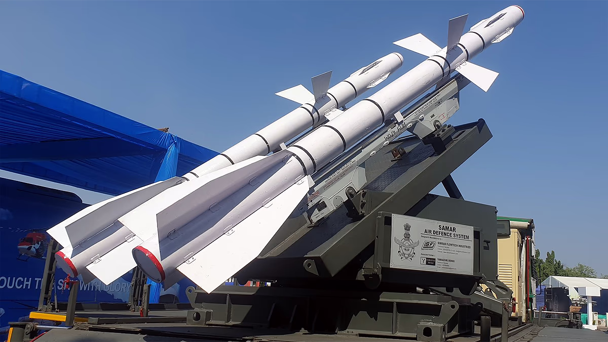 SAMAR missiles are truck-launched and can target any aerial objective at a speed of 2982 km/hr. Operated by the Air Force's BRD unit, they can take down a variety of aerial threats including helicopters and fighter jets.