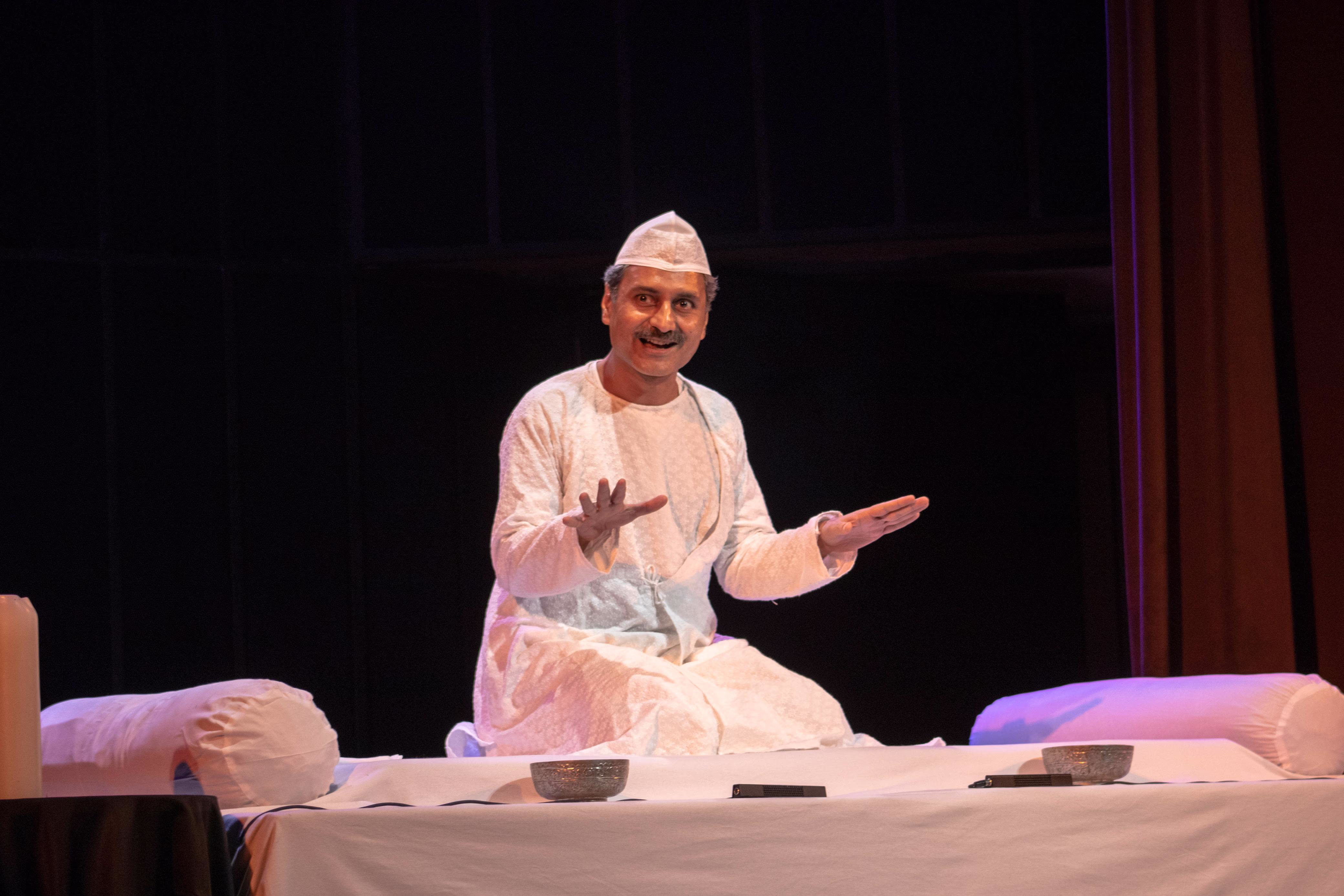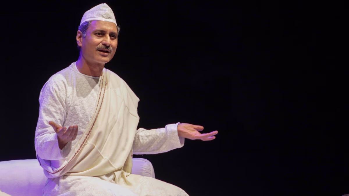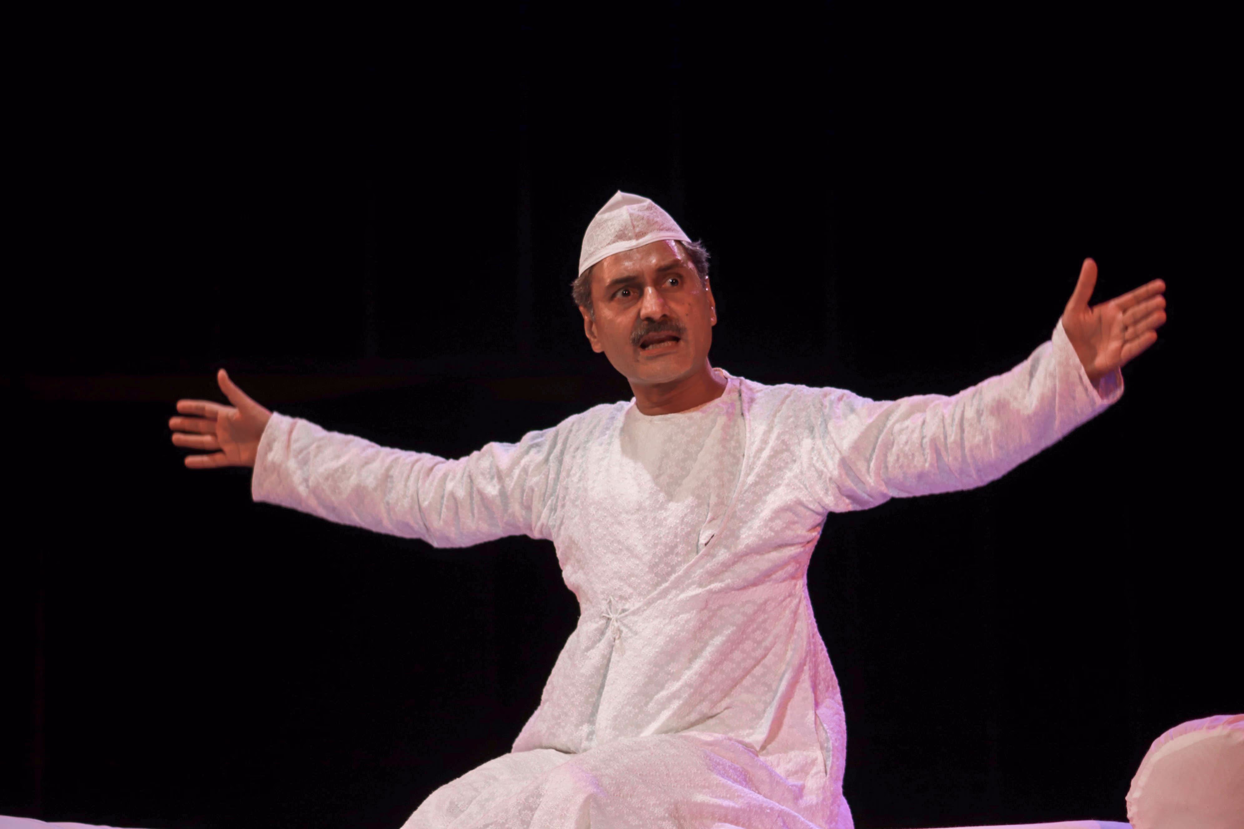 The stage is set, and there appears a figure in a white embroidered robe. He greets the audience with grace, sits upon the throne—but don't mistake him for royalty. This is a man with layers of stories embedded in his mind, tales of Tughlaq, of mystics, of lovers gone astray, of bygone events, heartfelt emotions, and wounds of the oppressed.