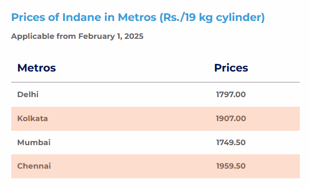 According to the Indian Oil website, new prices for 19 kg commercial gas cylinders have been announced and came into effect today, February 1, 2025. Among the four major cities, Delhi sees a reduction to 1797 rupees. In Kolkata, the price has fallen to 1907 rupees from 1911. In Mumbai, it is now 1749.50 rupees compared to the previous 1756. In Chennai, prices have decreased to 1959.50 rupees, down from 1966.