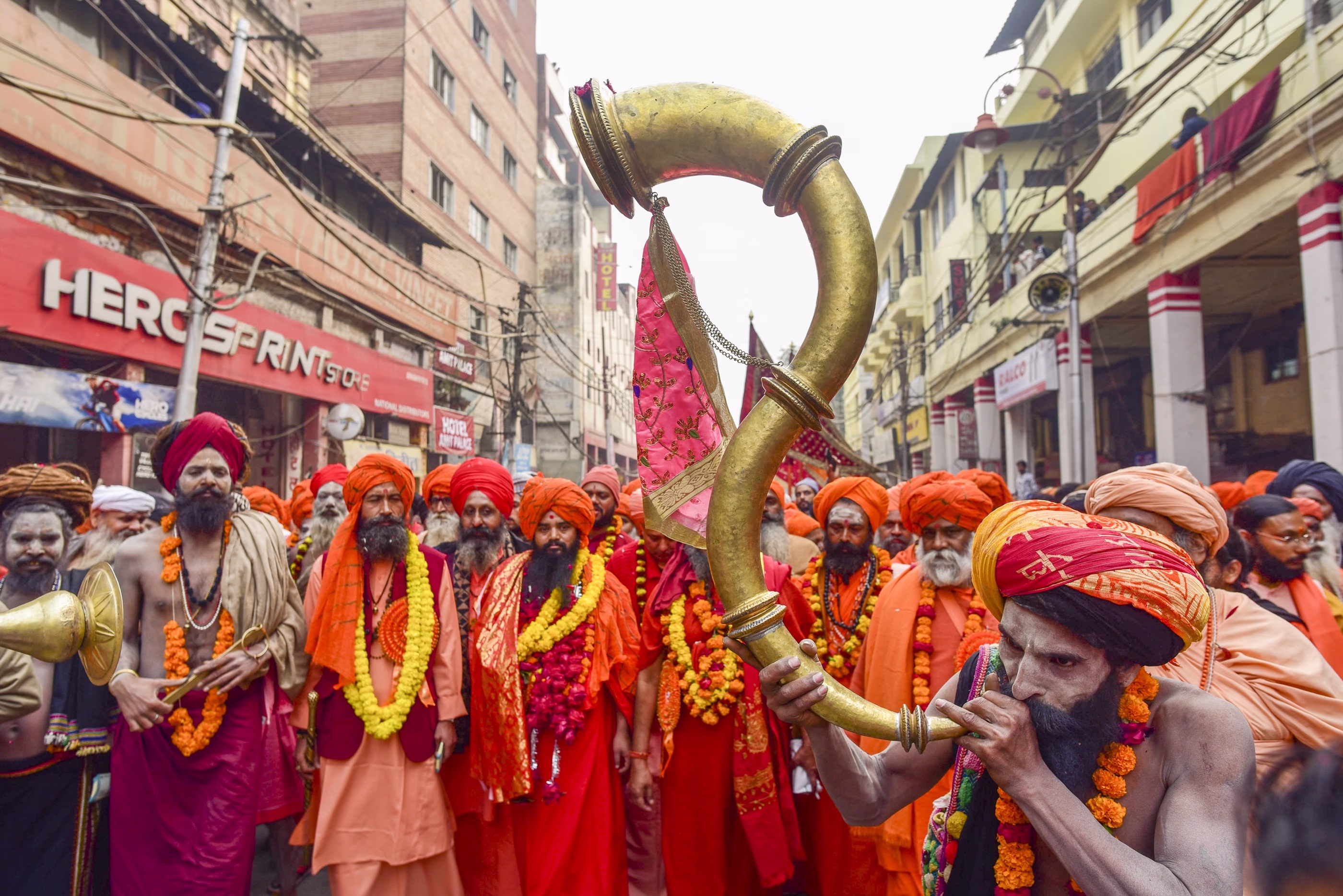 'One of Maha Kumbh's most extraordinary sights is naked sadhus dancing with exuberance amid the crowds, marching in rhythm to the drums to immerse in the river.'
