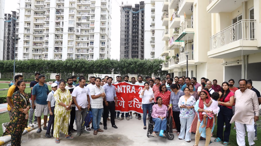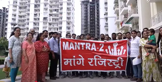 In Greater Noida West, around 900 residents of Mahagun Mantra 2 Society constantly fear that their homes might be confiscated. Even after receiving their homes, the fear persists. This project was launched in 2014, and the builder promised possession in 2017, but it wasn't until 2022 that residents finally got possession. However, their challenges didn’t end there. Post-possession, people are engaged in a prolonged battle for their home registries. Instead of spending weekends with their families, they are compelled to protest at the builder's and authority's offices.