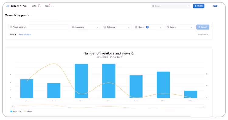 According to Telegram search engine and analytics platform Telemetrio, searches for “