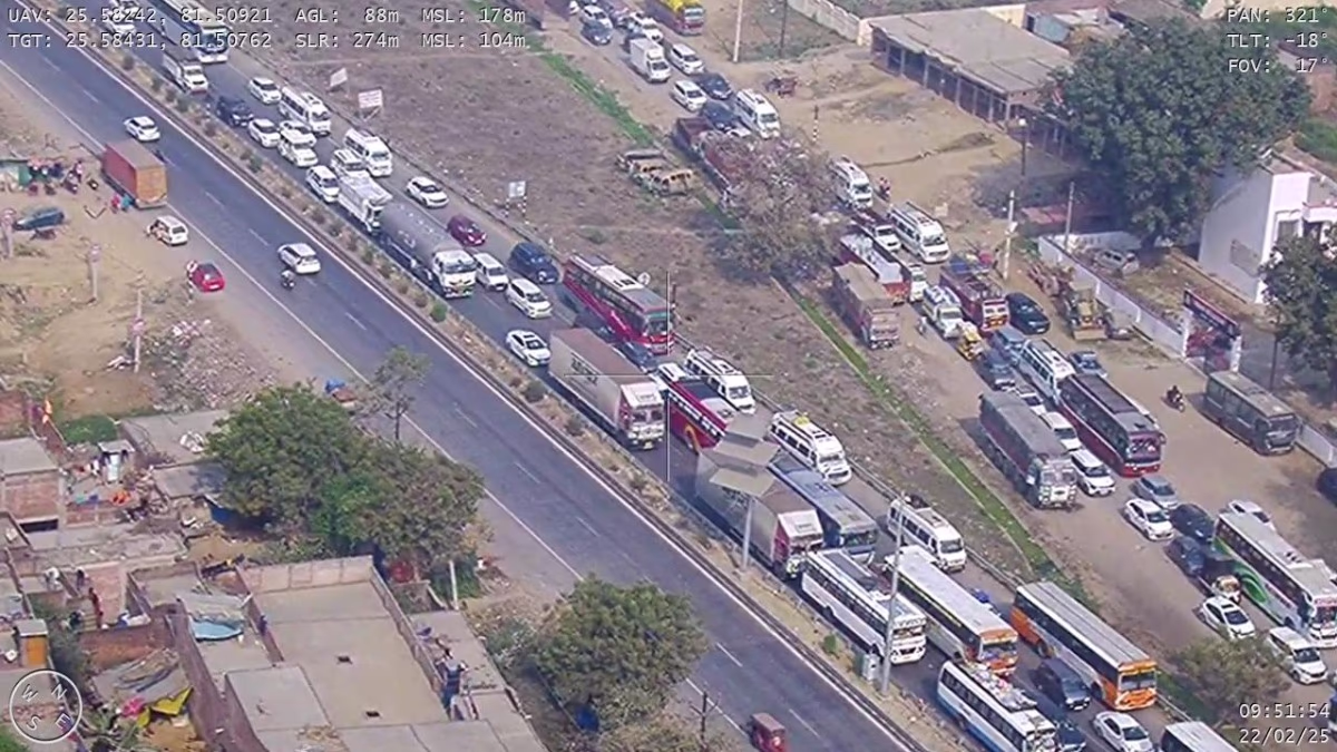 To facilitate pilgrims heading to Mahakumbh, the police administration remains fully alert. Prayagraj Zone's IG Prem Gautam, SP Brijesh Kumar Srivastava, ASP Rajesh Singh, and a large police force are deployed to manage highway traffic. Drones are being utilized by the police for monitoring traffic control and security on the highway.
