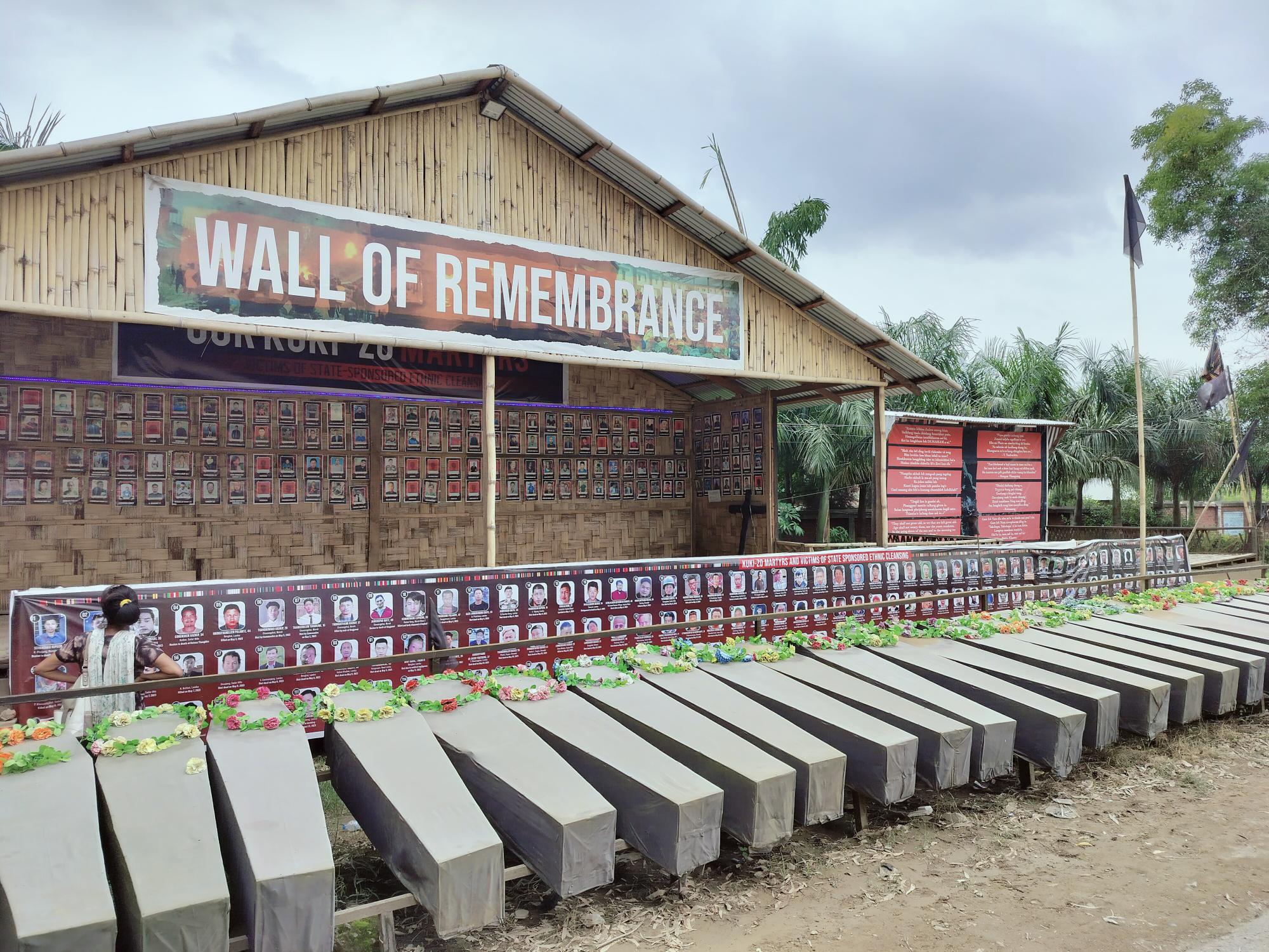Peace in Churachandpur city contrasts the area's violent history. The iconic Santnery Gate stands firm, a grim reminder of justice hanged in effigy. A memorial for the over 150 Kuki victims of violence persists, with coffins laid out since last July to honor their memories.
