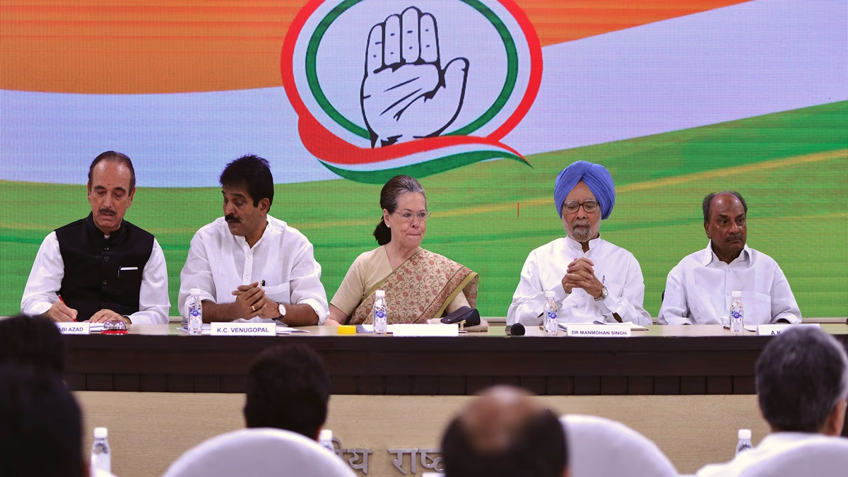 Here, Sonia Gandhi, Manmohan Singh, and other Congress leaders address the press. (Photo - India Today Group)