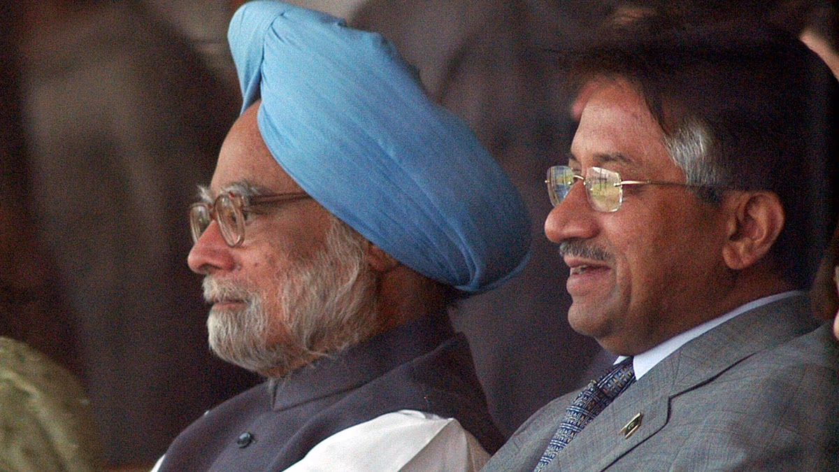 This image captures Indian Prime Minister Manmohan Singh with Pakistan President Pervez Musharraf in New Delhi. (Photo - India Today)
