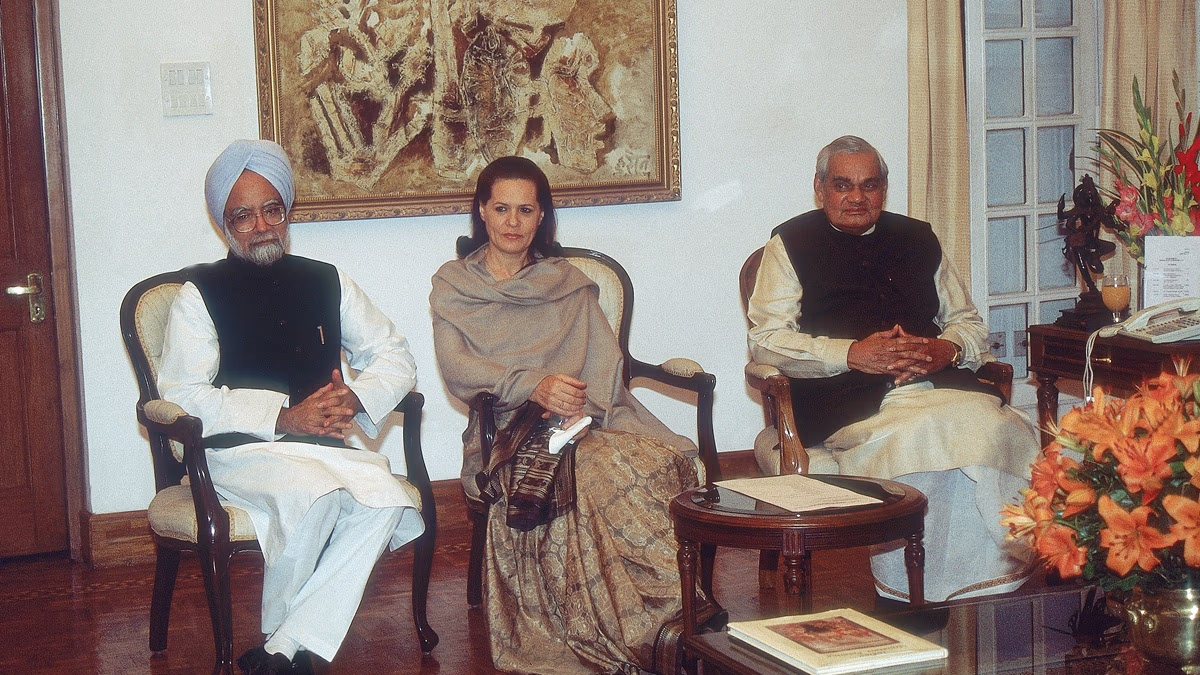 Pictured here are Manmohan Singh, Sonia Gandhi, and Atal Bihari Vajpayee. (Photo - India Today Group)