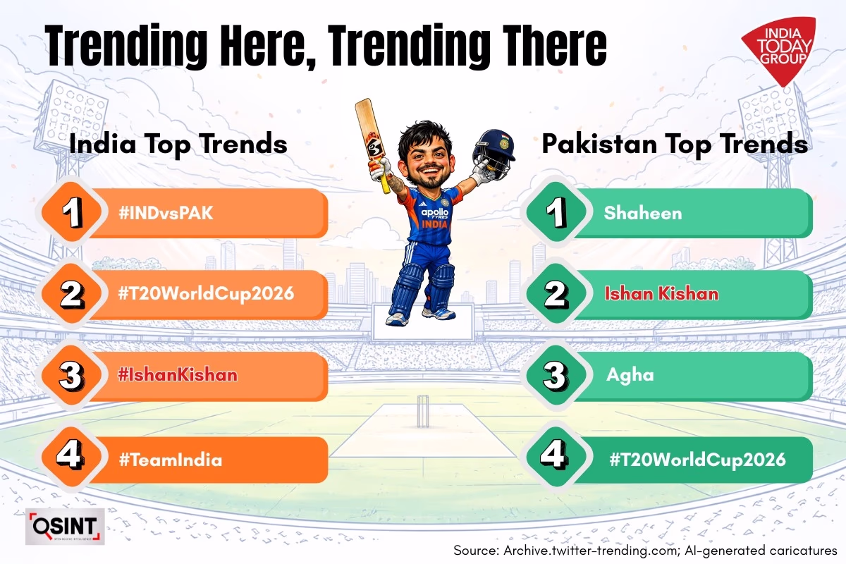 India Today's OSINT crew scrutinized X for posts, memes, taunts, and trends. It became apparent that the fiercest criticism came from within Pakistan itself. Additionally, open-source trending platforms identified Ishan Kishan of India as among the top trending names in Pakistan.
