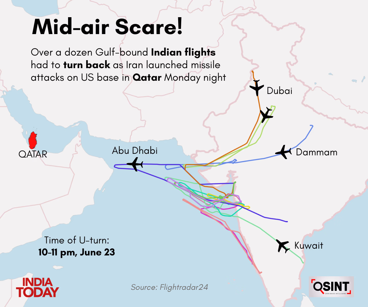 Everything seemed routine for pilots departing from Indian airports with thousands of passengers on Monday night. However, as they reached midway, flights were forced to turn back after Iran launched ballistic missiles at an American airbase in Qatar.