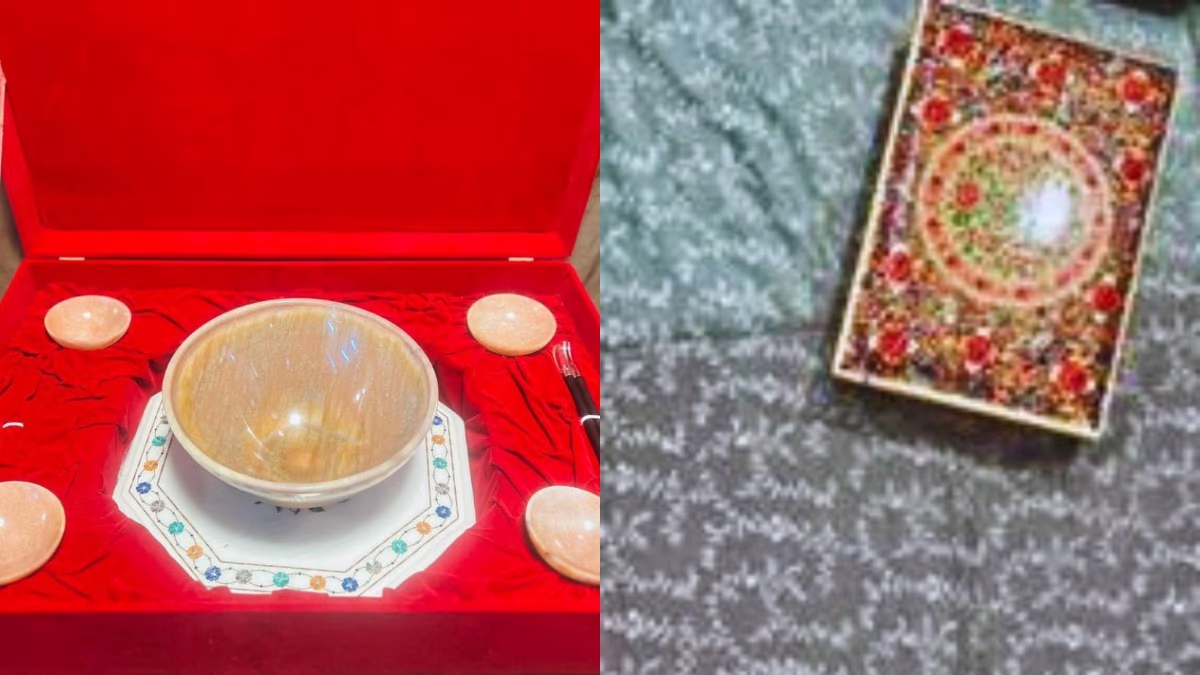 PM Modi presented Japanese Prime Minister Shigeru Ishiba with a special set of 'ramen bowls with chopsticks'. This exquisite set is made from valuable moonstone and silver, including one large brown moonstone bowl, four smaller bowls, and silver chopsticks. Inspired by Japan's traditional Donburi and Soba dining customs, this set is a symbol of cultural fusion.