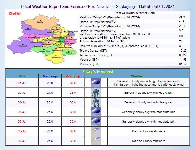 As June draws to a close, the monsoon has reached most parts of the country, yet some areas in Haryana and Rajasthan are still anticipating its arrival. Despite the onset of monsoon, many states struggle with rainfall shortages while others face destructive downpours. The northern states of India, including the national capital Delhi, have been grappling with a scarcity of rains. Following substantial rainfall on June 28, the monsoon in Delhi has since seen a pause. However, the Meteorological Department unveils a fresh alert for heavy rainfalls once again.