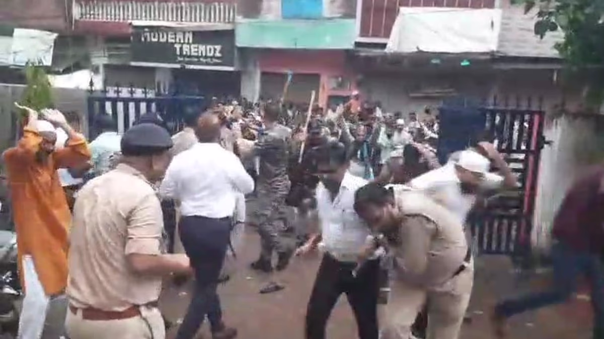 Javed Ali from Anjuman Islamia Committee stated that he and his colleagues were at the police station to submit the memorandum when others began pelting stones from outside.
