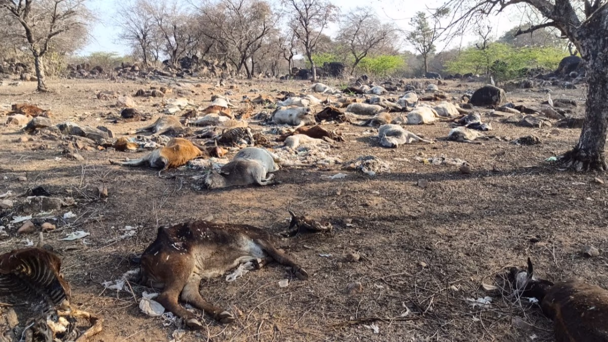A shocking sight was witnessed in Shivpuri, Madhya Pradesh. In the village of Sillarpur, hundreds of cow carcasses were found lying in the forest. Some cows are still alive. These cows are located on the reserved forest land, just 500 meters from the Shivpuri-Jhansi highway. Villagers were astonished to see such a large number of dead cows. Where did these cows come from? How did they get here? No one has any clues.