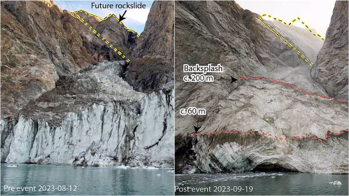 The seismic waves from these quakes spread worldwide. Scientists were puzzled about their origin. Through satellite and ground imagery, they discovered that a mountain's upper part near Dicson Fjord had become unstable due to climate change. Meanwhile, a glacier beneath was rapidly melting and collapsing. This study was published on September 12, 2024, in the