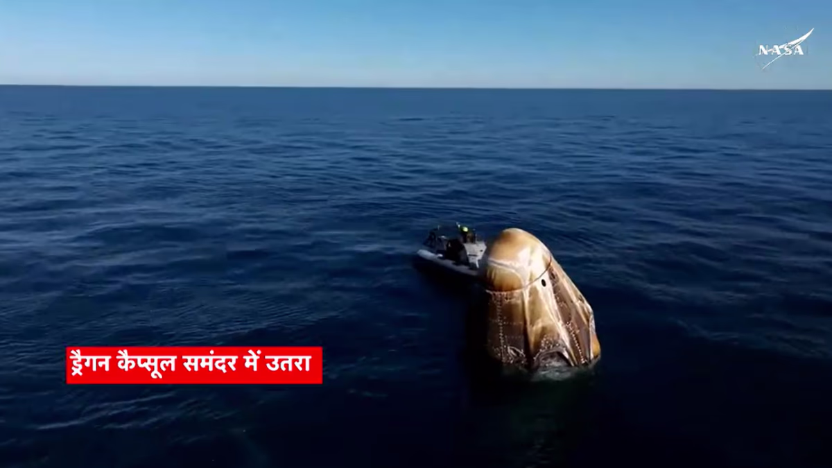 At 2:41 AM, the Dragon capsule carrying Sunita Williams and her three companions was set to re-enter the atmosphere. All four astronauts were clad in special pressure jackets as the entire world watched live. Precisely at 2:41, the spacecraft initiated its deorbit burn, entering Earth's atmosphere. Two parachutes first appeared, slowing down the descent, followed shortly by two more, bringing the capsule to a gentle splashdown in Florida's waters.