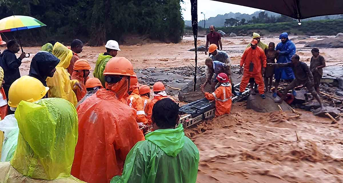It is a scene of total devastation post the torrential rains and the ensuing landslide in Wayanad. The drone images reveal the extent of destruction vividly. Floods have overtaken everywhere. The number of fatalities is rising, with debris still yielding bodies. Several people are still trapped under the debris. Over 116 individuals have been reported severely injured. The Army, Airforce, and Navy are tirelessly engaged in rescue missions. The situation is so dire that the rescue team is facing immense challenges in retrieving the bodies.