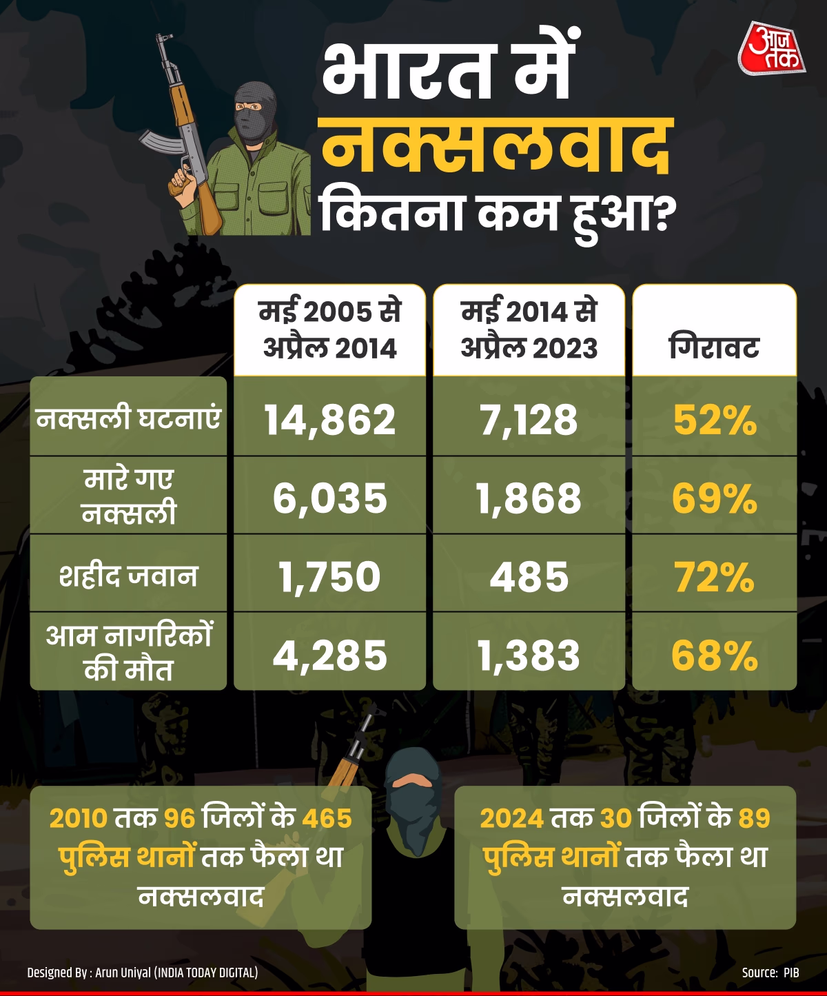 On August 7 this year, Minister of State for Home Affairs Nityanand Rai presented data in Parliament regarding Naxalism. According to him, Naxalite incidents have decreased by 73% in 2024 compared to 2010, and deaths in these incidents have reduced by 86%. In 2010, 1,005 people died in Naxalite incidents, whereas only 138 deaths were reported in 2023, including security personnel.