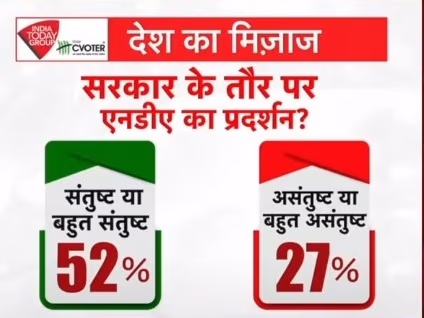 Regarding the NDA government's performance, 52% of people expressed satisfaction or high satisfaction, while 27% conveyed dissatisfaction or severe dissatisfaction.
