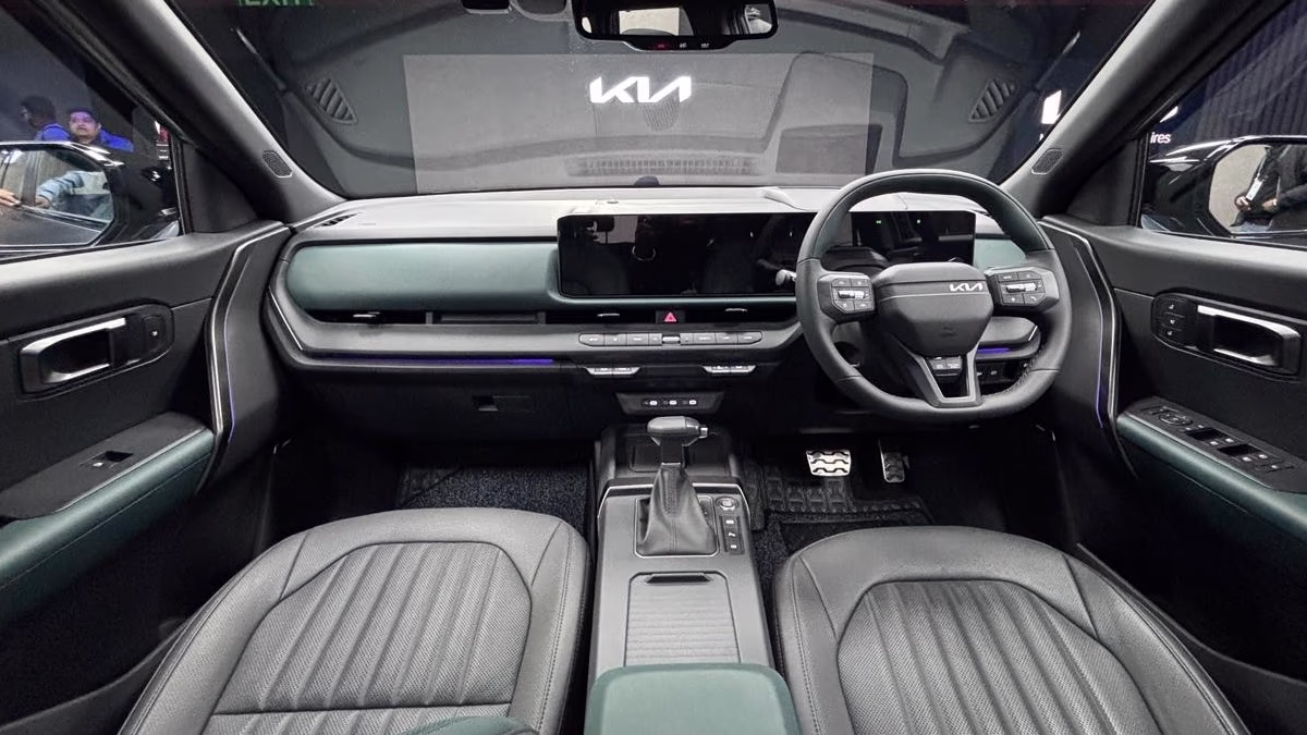 Kia India describes the cabin as ultra-modern and technically advanced. Featuring a smokey black and white two-tone interior, it presents white elements with sophistication. The leatherette seats might bring to mind the recently unveiled Kia Seltos model.