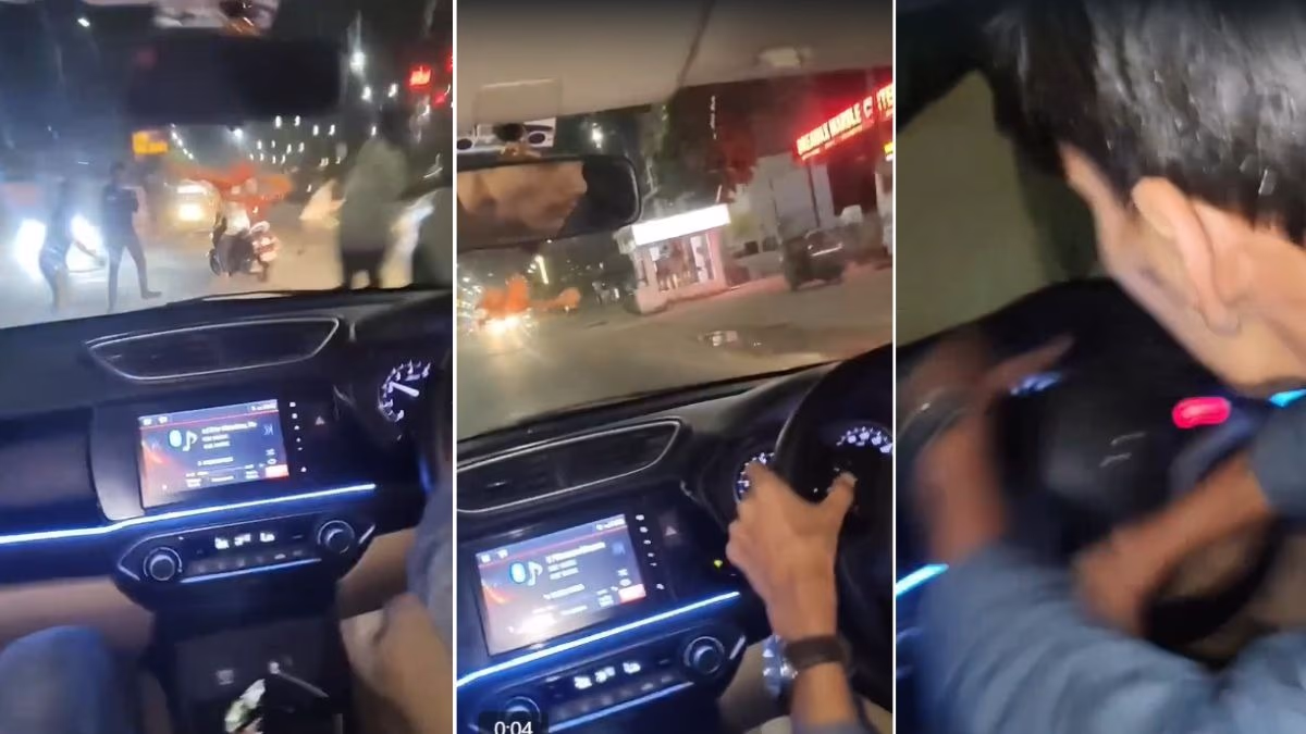 A horrifying video of stunt driving has emerged from Jaipur, the capital of Rajasthan. The video shows a car intentionally hitting four people on the road. Another young man inside the car recorded the incident, which is now viral on social media.