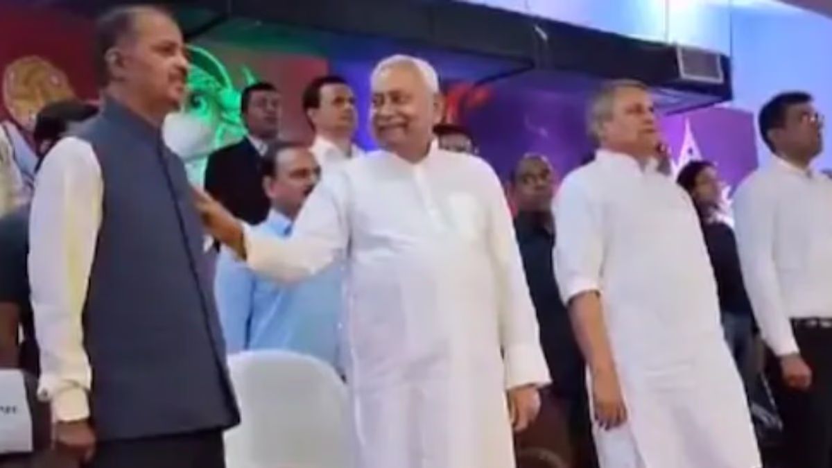 Throughout the playing of the national anthem, Nitish Kumar was seen glancing around and even greeted the audience with folded hands before the anthem concluded. His actions have now become a focal point for the opposition.