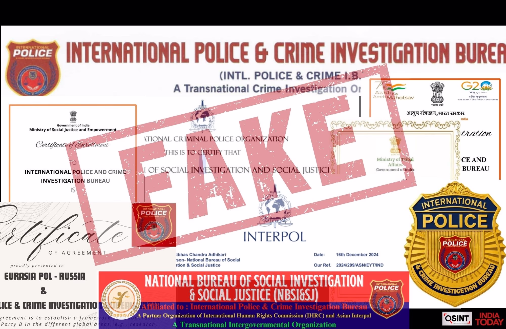 During a raid by Uttar Pradesh Police, fake documents, stamps, and website contents boasting global presence were confiscated. Their website claimed offices in the UK and USA. As per a statement from UP Police, the gang purported ties with Interpol, the International Human Rights Commission, 'Eurasia Pol', and 'Asia Pol'. The organization even professed to have offices in every state across India.