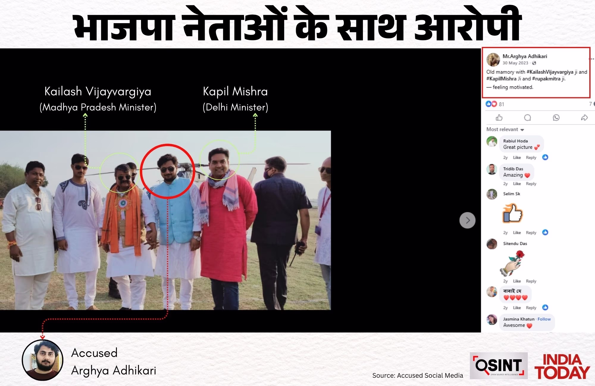 On social media, Bibhas and Arghya have unabashedly highlighted their political connections. Their images with prominent figures like former AYUSH Minister Shripad Yesso Naik, Madhya Pradesh Minister Kailash Vijayvargiya, Delhi's Minister Kapil Mishra, TMC leader Anubrata Mandal, and TMC MP Satabdi Roy are noteworthy.