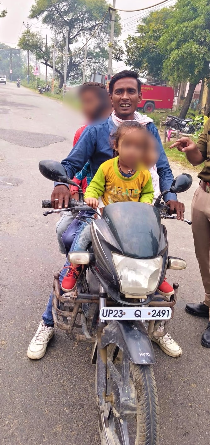 On Tuesday morning, at Gadhmukteshwar's Palwara checkpoint, traffic police were conducting routine checks. During this time, they stopped a motorcyclist heading towards the highway. On the bike were a total of seven riders, including one adult and six minor children, leaving the officers visibly surprised.