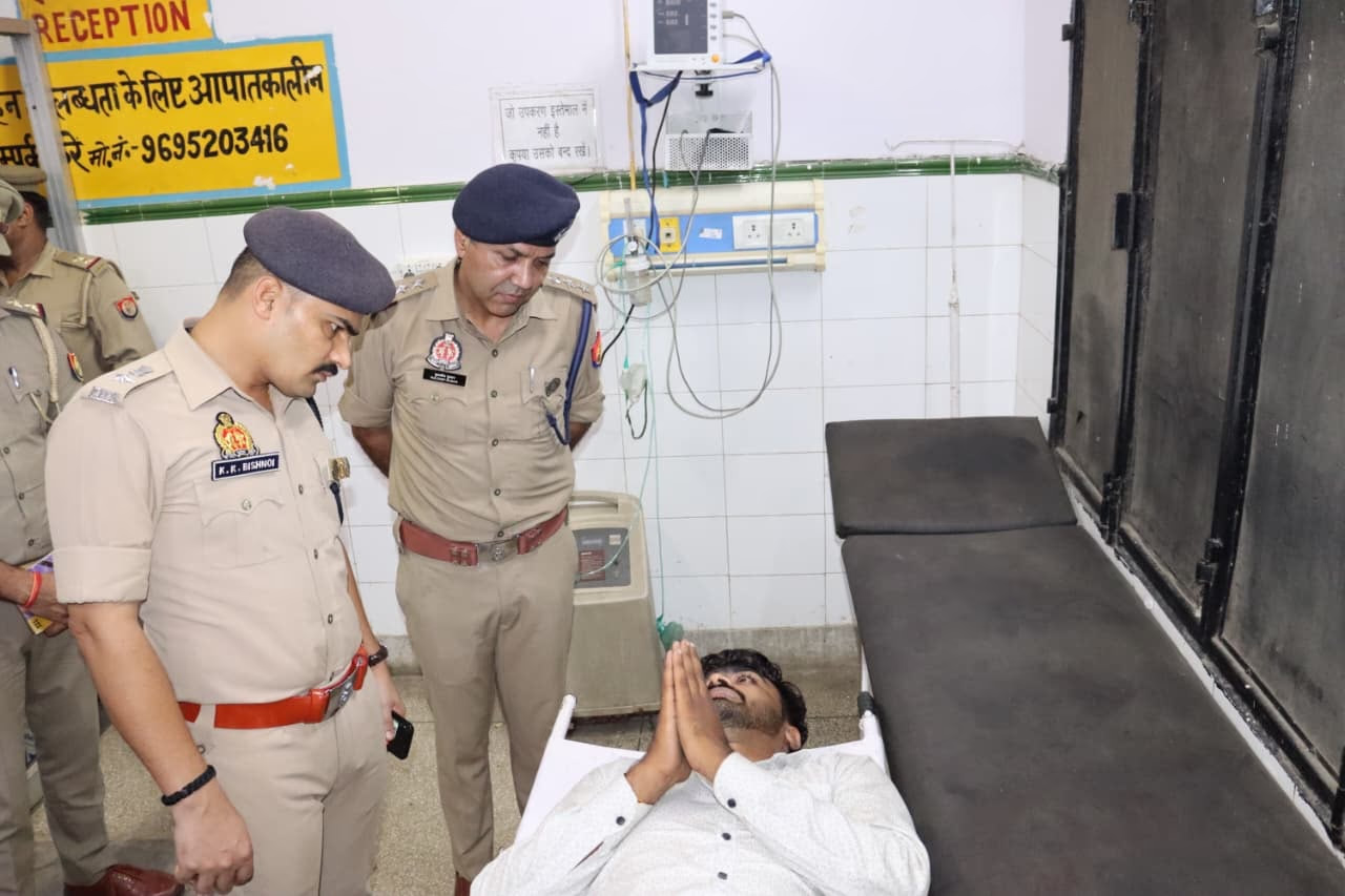 Two days ago in Sambhal, police faced off against a brazen acid attack suspect targeting a returning school teacher. During this intense showdown, the acid attacker's legs were shot. Following the encounter, senior officers including SP KK Bishnoi, ASP, and CO, along with police forces from multiple stations, arrived at the scene.