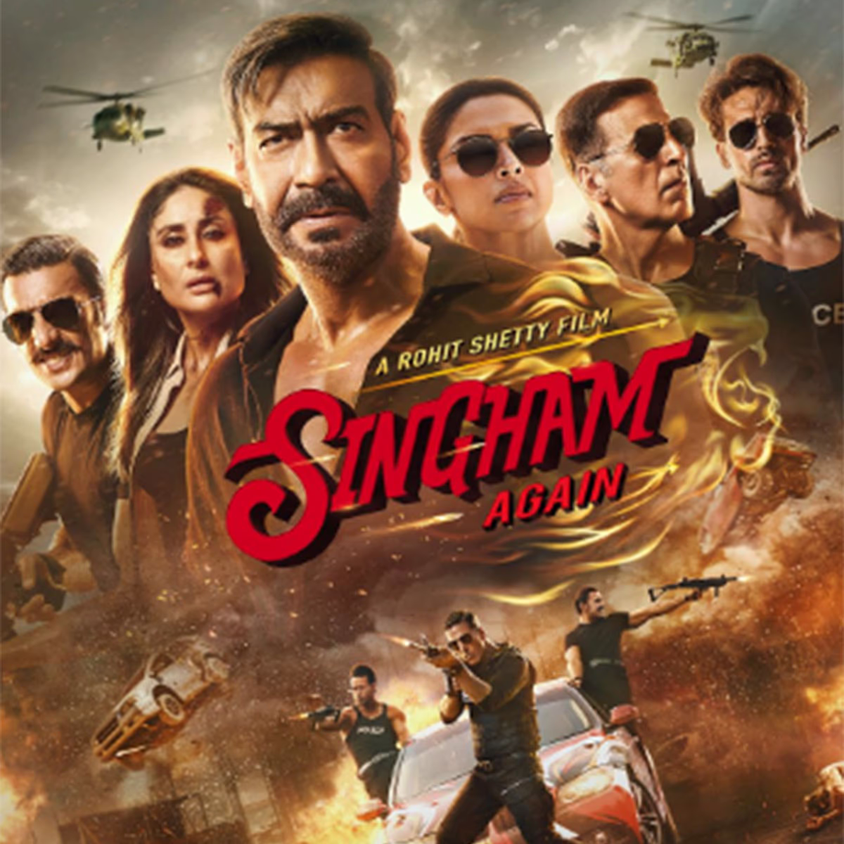 The fifth installment of Rohit Shetty’s cop universe, 'Singham Again', is now on Amazon Prime. DCP Bajirao Singham (played by Ajay Devgn) is back, rallying his team to save his wife Avni (Kareena Kapoor Khan). Arjun Kapoor stars as the antagonist.