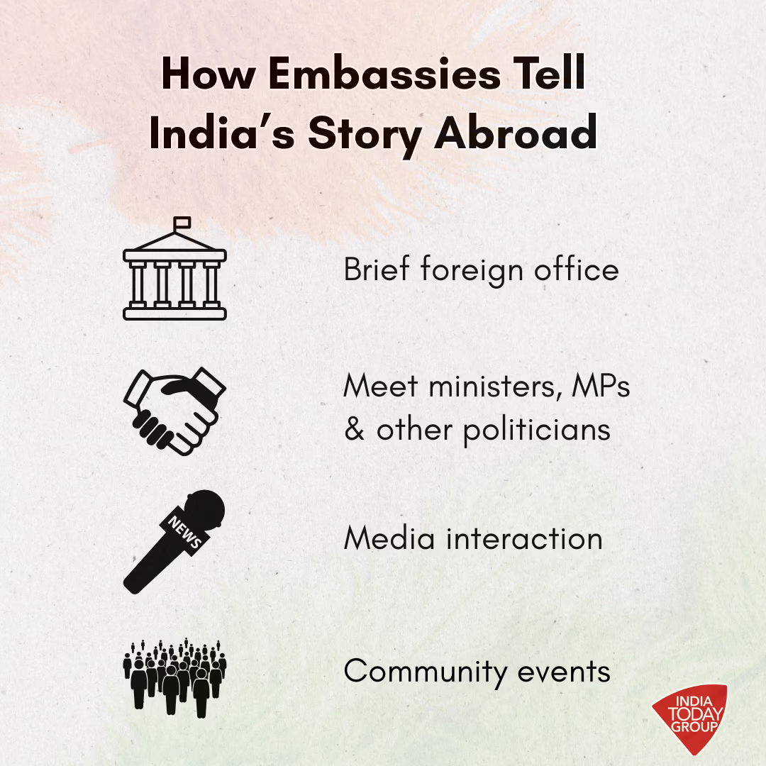 Embassies adopt a multi-faceted approach to effectively communicate their messages. This includes briefing host countries' foreign ministries, garnering support from ministers and politicians, and reaching out to the public through media. Two former diplomats informed India Today that organizing public events such as prayer meetings or protest rallies is also considered a crucial component.