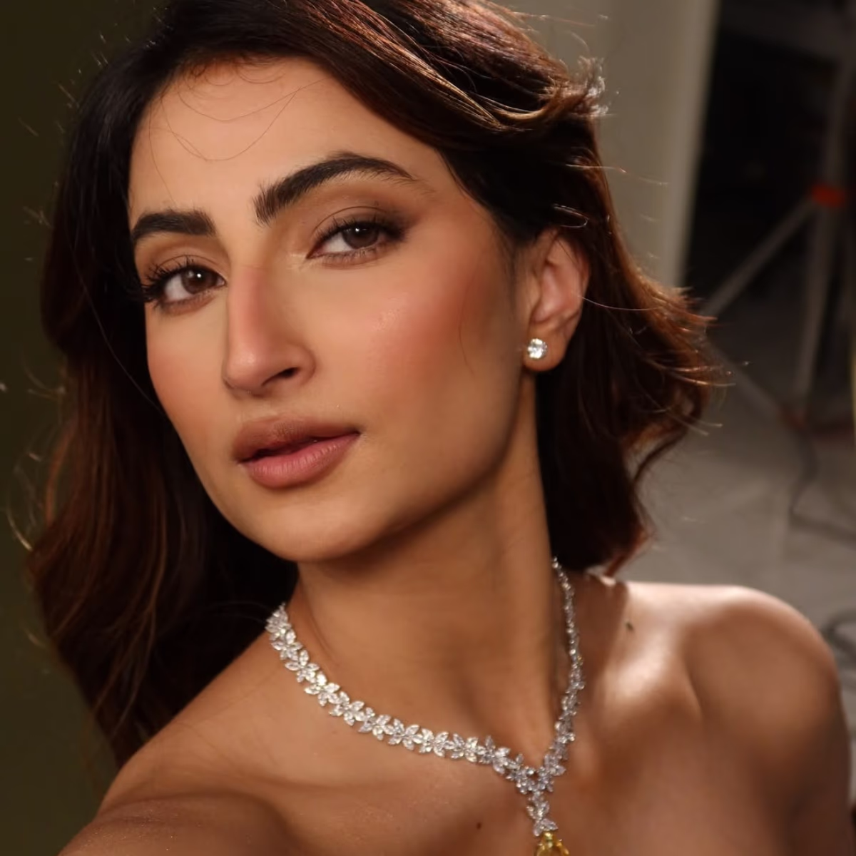 Her tresses were elegantly styled, complemented by high heels, and a nude makeup palette highlighted her natural charm—opting for minimal accessories.