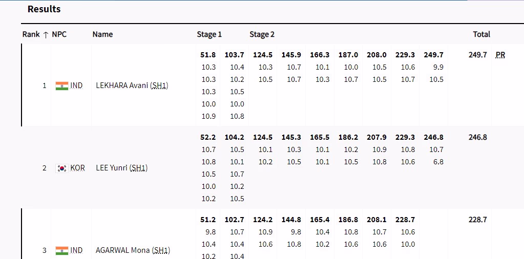 22-year-old Avani scored 249.7 points in the finals, setting a Paralympic record. Bronze medalist Mona scored 228.7 points. Avani also won a gold medal in the same event at the Tokyo Paralympics (2020), successfully defending her title. South Korea's Lee Yunri won the silver medal in this event. At the Tokyo Paralympics, Avani also won a bronze medal in the 50-meter rifle three positions. Avani is the first Indian woman to win two gold medals at the Paralympics.