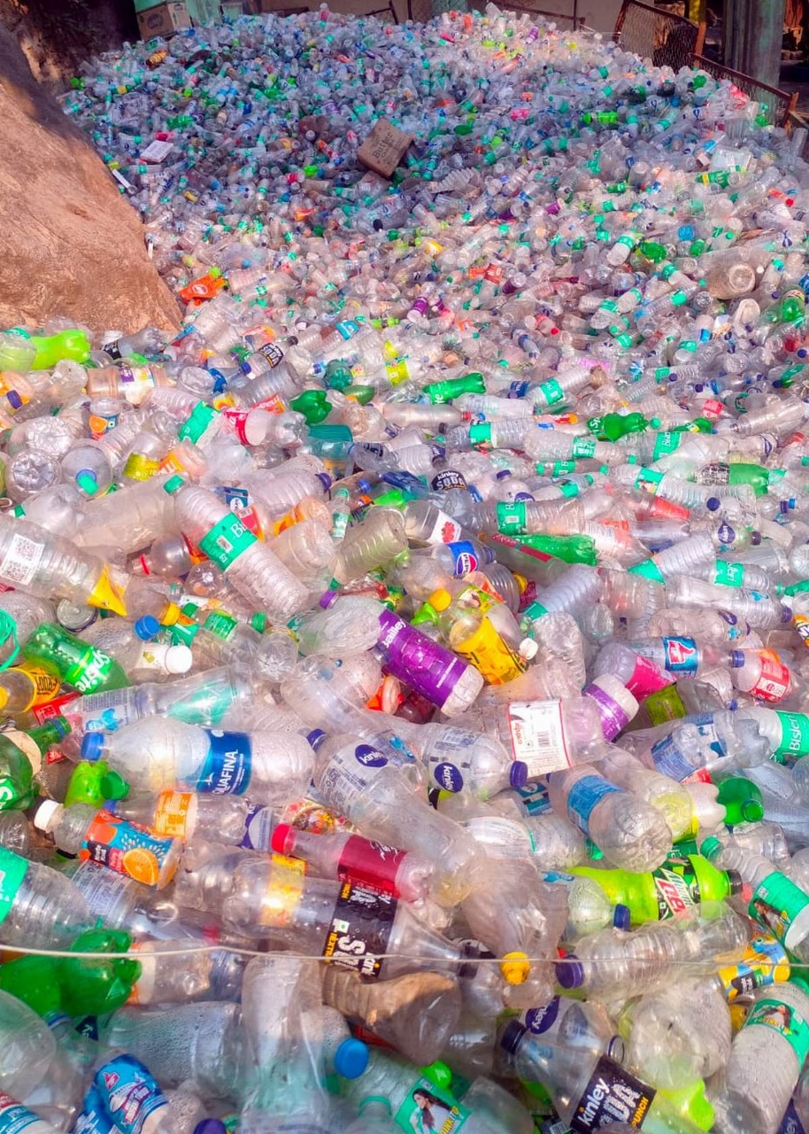 In the past month, over two and a half lakhs of water, cold drink, and beverage bottles were collected. Including other plastic waste, the total amount of plastic collected sums up to three tons.