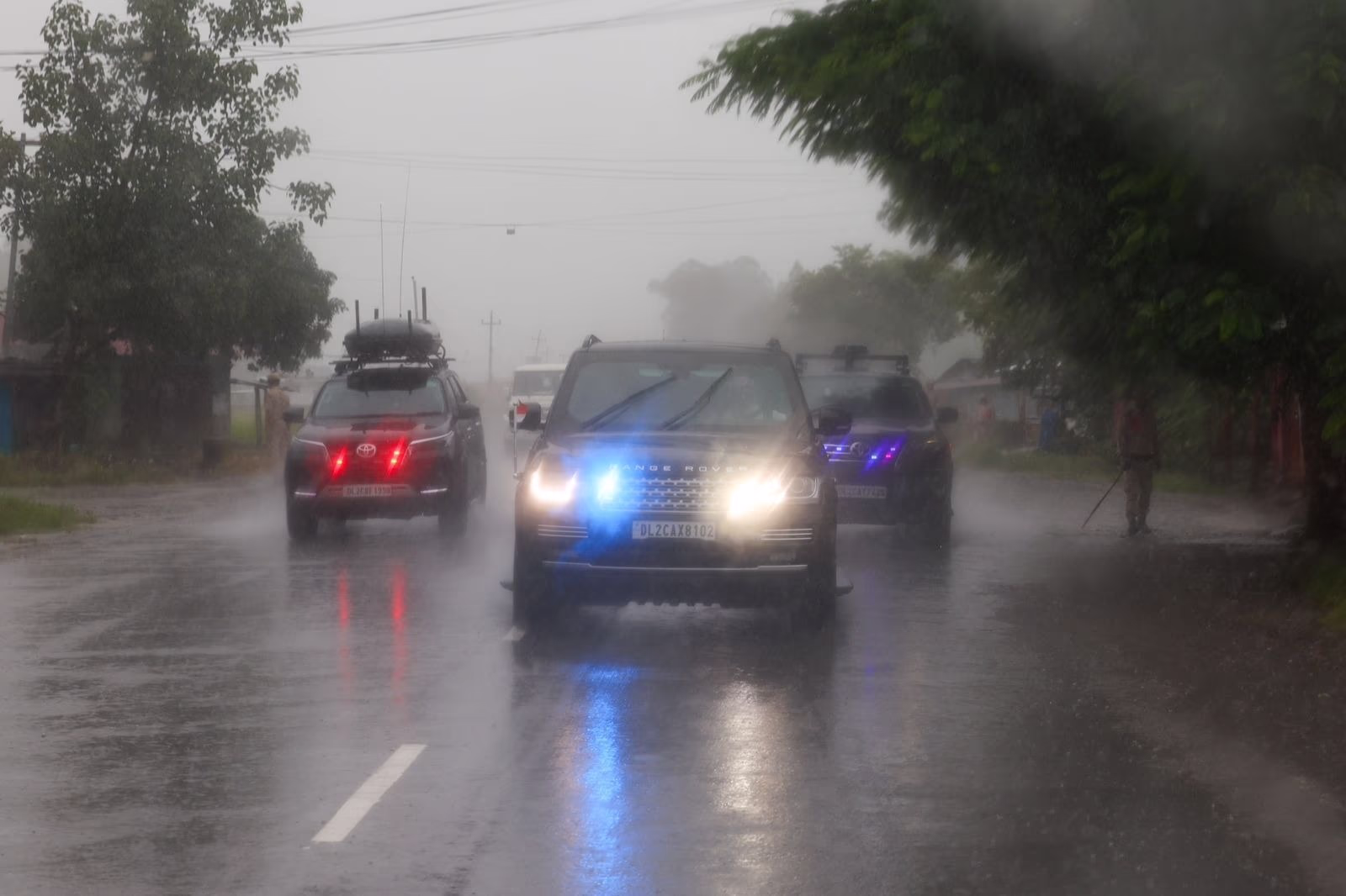 The rally location was about an hour and a half by road. Despite this, PM Modi chose to travel by road, ensuring his meeting with the people. Braving the heavy rain, he reached Churachandpur to lay the foundation for projects worth thousands of crores.