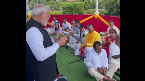Prime Minister Narendra Modi is presently visiting Guyana. During his visit, he partook in a captivating 'Ram Bhajan' program. This soul-stirring moment was shared by Amit Malviya on X, where members of the Indian community could be seen singing devotional hymns. In a fascinating sight, PM Modi was seen playing the cymbals enthusiastically.