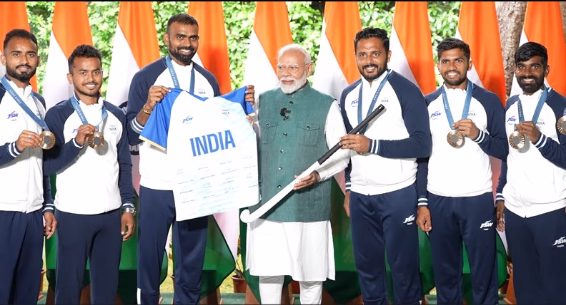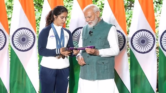 PM Modi received various unique gifts from the Indian athletes. Shooter Manu Bhaker presented a pistol to PM Modi. Wrestler Aman Sehrawat and hockey stalwart PR Sreejesh gifted a jersey featuring signatures from Indian athletes. Indian hockey team captain Harmanpreet Singh gifted a hockey stick on behalf of his team. During the event, PM Modi also addressed the athletes, though the details of his speech are yet to be disclosed.