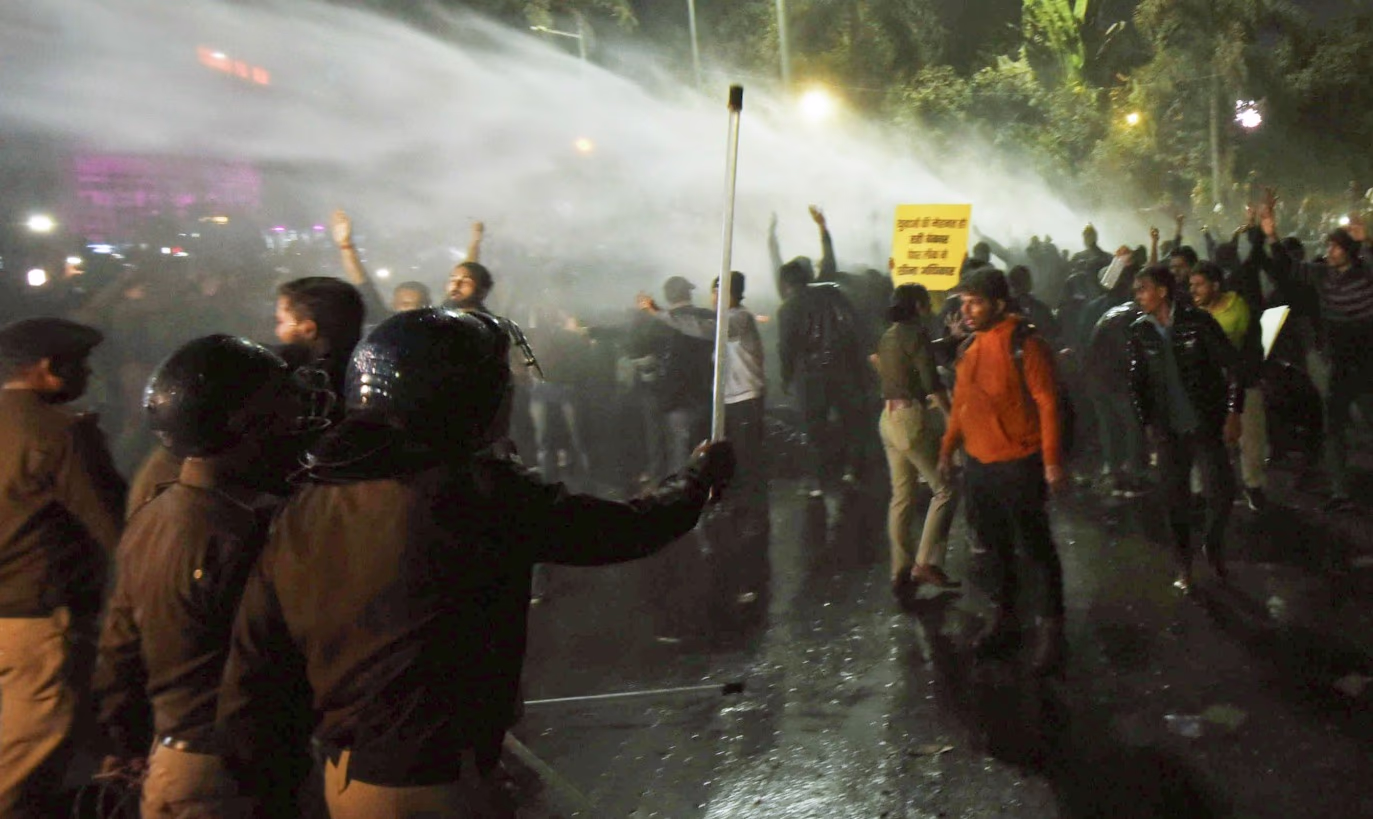 Videos from JP Golambar highlight how forcefully aspirants were sprayed with water cannons. Braving the cold weather, they continued their protests holding national flags. The police's baton charge led to some aspirants being hospitalized.
