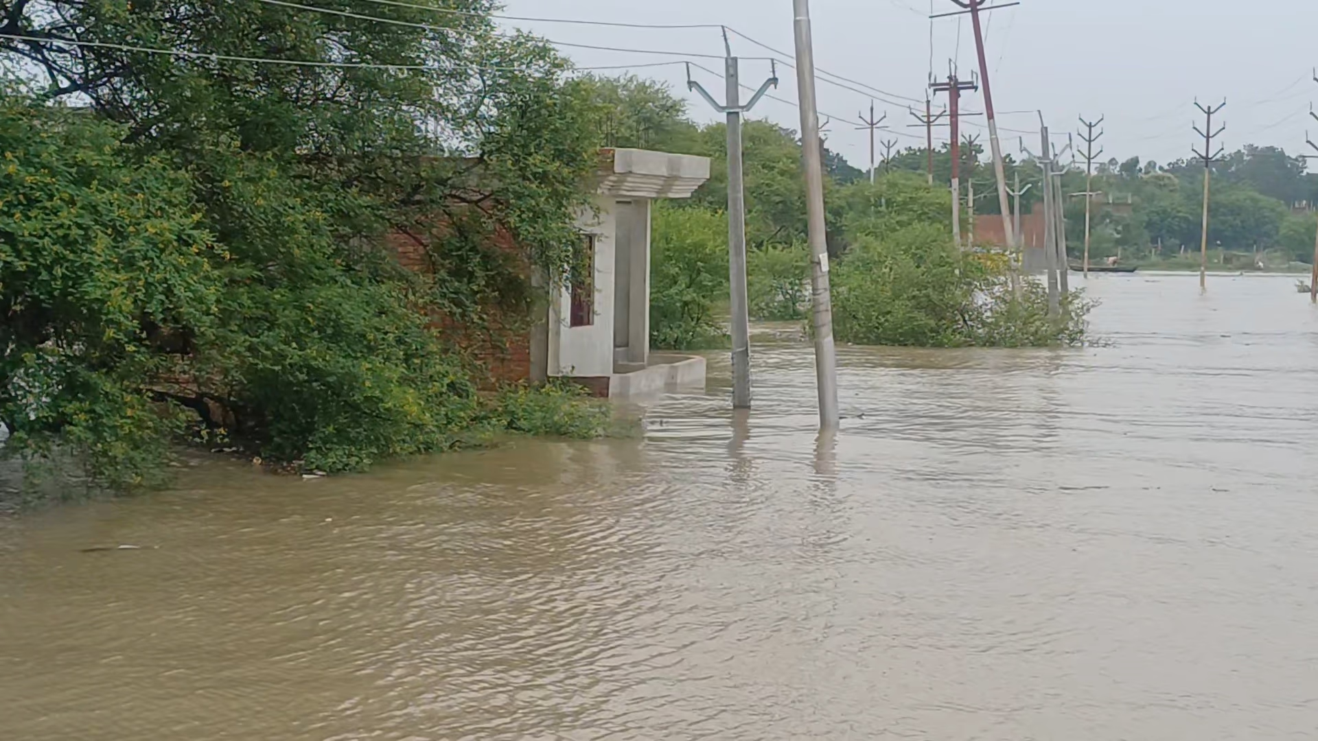 In Prayagraj, it’s now almost impossible to discern the boundaries of the Ganga and Yamuna. The Kila Ghat and Jhunsi areas are indistinct, while these rivers signal grave threats to the city. Glacial flow now dominates Ganga’s catchment areas—Bela Kachar, Rajapur, Teliarganj, Sonauthi, Bagadha—the lush riverbanks are overcome, and Prayagraj's Hanuman temple is completely submerged. Only the temple’s flag is visible, while the Shankar Viman Mandap, along the Sangam shore, isn’t spared by Ganga's reach.